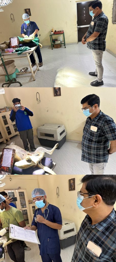 At Karunashram, Mr. Ashish Goswami and his team caught 19 stray dogs from Sawangi (Meghe), and in connection with the surgeries and other treatments performed on them, a sterilization surgery was performed on one of the stray dogs in the presence of Honorable Mr. Soman Saheb, Chief Executive Officer, Zilla Parishad Wardha.