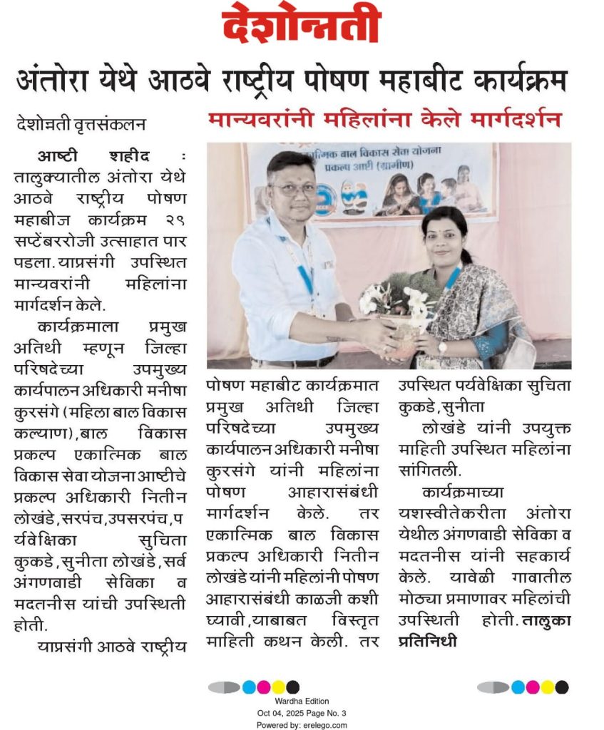 Date 30/09/2025, Poshan Maah was conducted at Garpit under Integrated Child Service Scheme, Project Karanja (Ghadge).